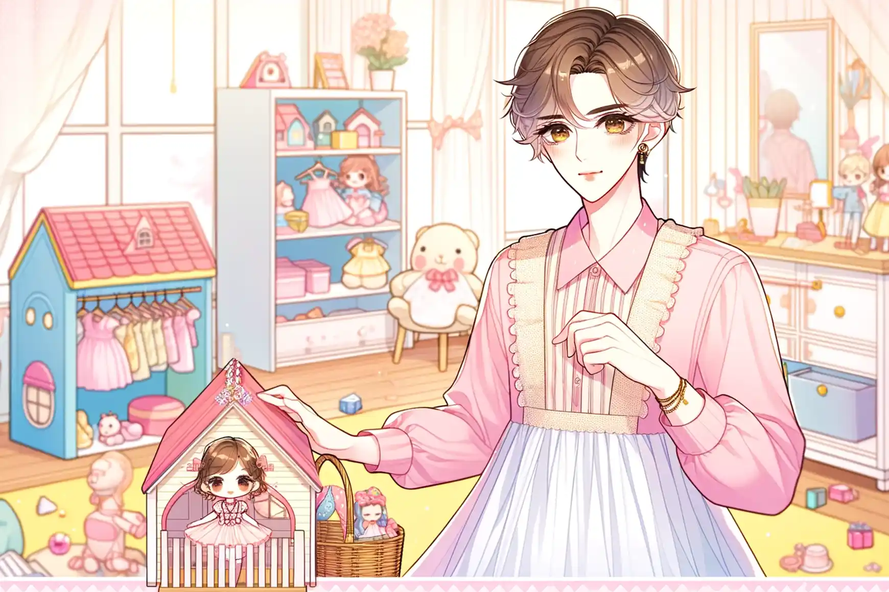 Chris, now Daisy, followed Ophelia hesitantly to a room that seemed to belong in a different world altogether. It was whimsically decorated, resembling a nursery more than anything else. The shift in his reality was abrupt and disorienting.